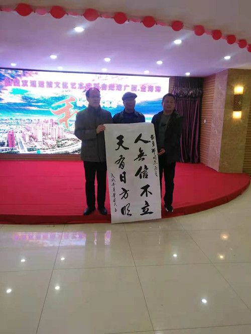 中國書法家協(xié)會會員、山西省運城市楹聯(lián)學會會長楊振生先生揮毫潑墨,寄予金海灣:金海灣中金浪起,彩霞夢里彩云歸。
